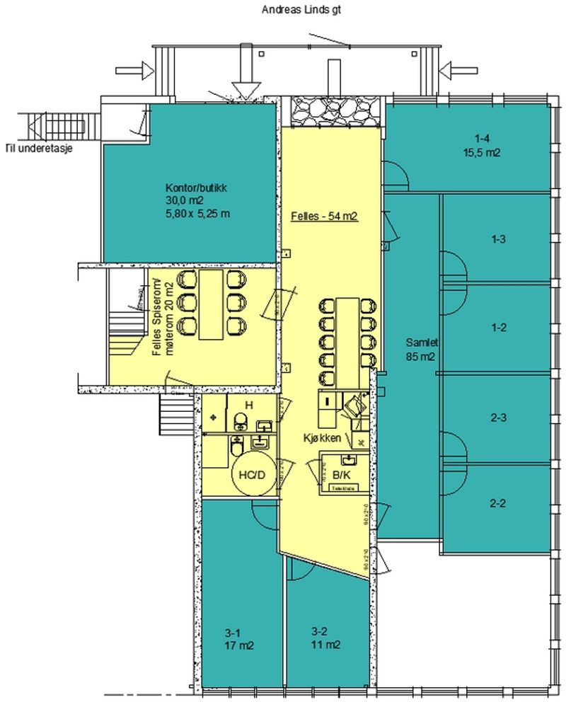 Vi følgende lokaler ledig i hovedetasje mot Andreas Linds gt: