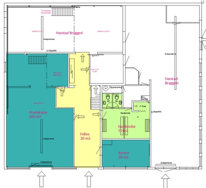 Like ved inngangen til kontorene har vi også et lokale på 30 m2 som kan benyttes til butikk, utstillingslokale eller som kontor. Lokalet kan etter avtale ha tilgang til kontorfellesskapet som nevnt over. For de som er lokalkjent; Harstad Bryggeri, som nå holder til i underetasjen, hadde utsalg her tidligere. Øvrig leietakere i fellesskapet er Heis Nor.